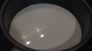 Mettre le lait, les épices et le sel à chauffer dans une casserole sur feu moyen.