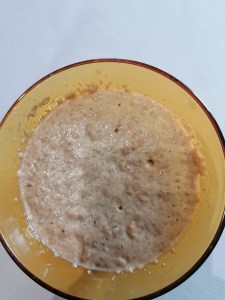 Mélanger le lait tiède avec le sucre et la levure de boulanger et mettre de coté. La levure va fermenter.