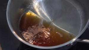 Cuire sans JAMAIS remuer avec une spatule (j’ai vu des gens réussir leur caramel en remuant avec une spatule mais moi je ne le fais pas) faire pivoter la casserole régulièrement pour uniformiser la cuisson du caramel.