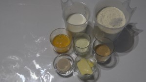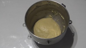 Ajouter ensuite l’œuf battu, le sel, le lait en poudre et la farine.
