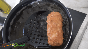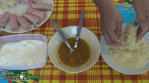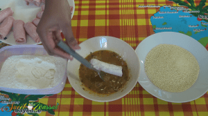 répéter l’opération une seconde fois. C’est très important de paner les roulés deux fois, afin d’éviter que la mozzarella ne s’échapper à la cuisson.