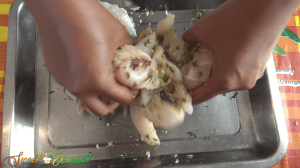 Et y ajouter le citron, le sel, les condiments mixés ainsi que les épices.