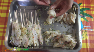 Et embrocher sur des pics en bois ou des mini pics en bambou.