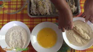 Disposer la farine, la chapelure et l’œuf dans des récipients séparés.