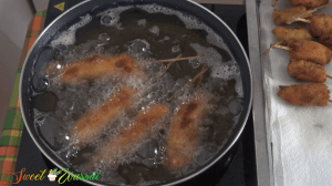 Une fois que l’huile est bien chaude, frire les brochettes jusqu’à ce qu’elles soient bien dorées.