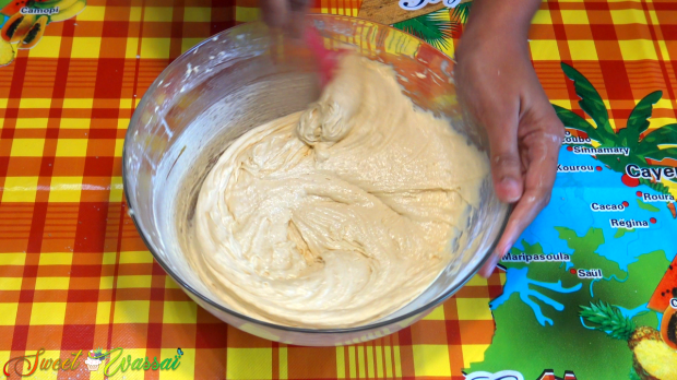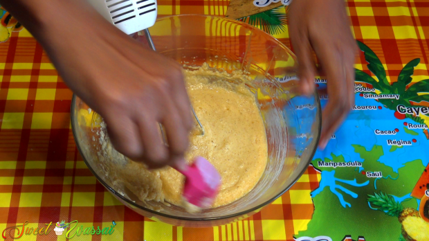 Et enfin le reste de farine tout en raclant les bords régulièrement