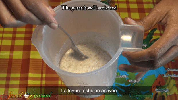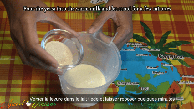 Verser la levure dans le lait tiède et laisser reposer quelques minutes