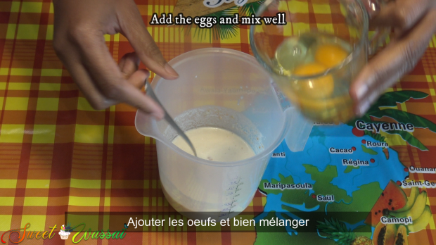Ensuite y ajouter les œufs et le beurre fondu et bien mélanger