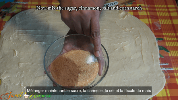 Mélanger maintenant le sucre, la cannelle, le sel et la fécule de maïs