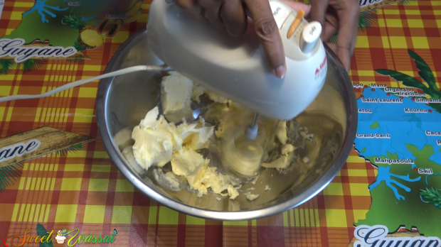 Commencer par bien fouetter le beurre puis ajouter le sucre glace et fouetter à nouveau