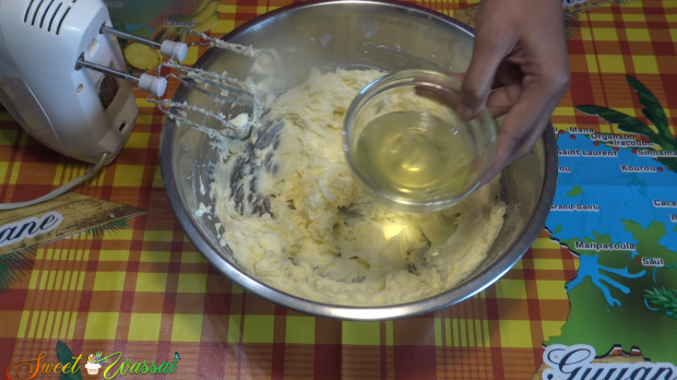 Ajouter les blancs d’œufs en 3 fois et la vanille,