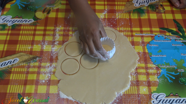 Etaler les autres pates et découper à l’aide d’un emporte-pièce ou d’un gobelet