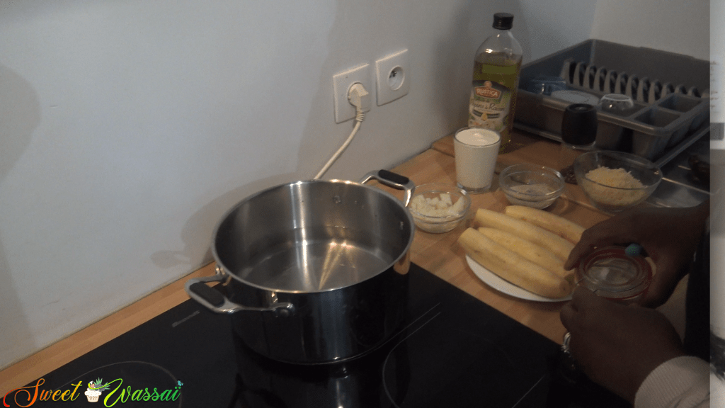 Commencer par éplucher et cuire les bananes à l’eau salée