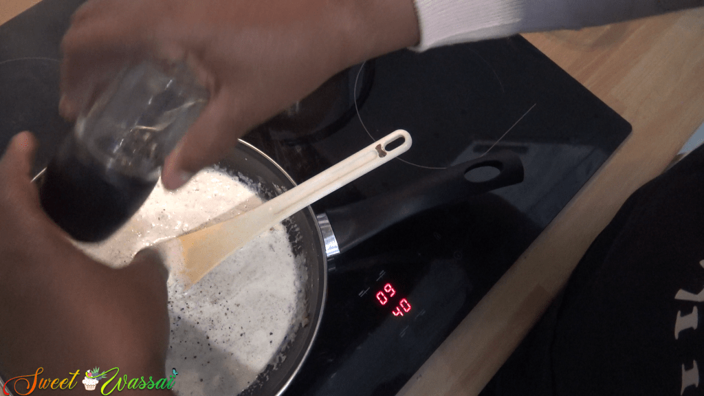 Puis ajouter la farine de banane et bien mélanger