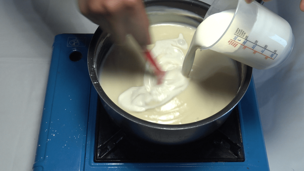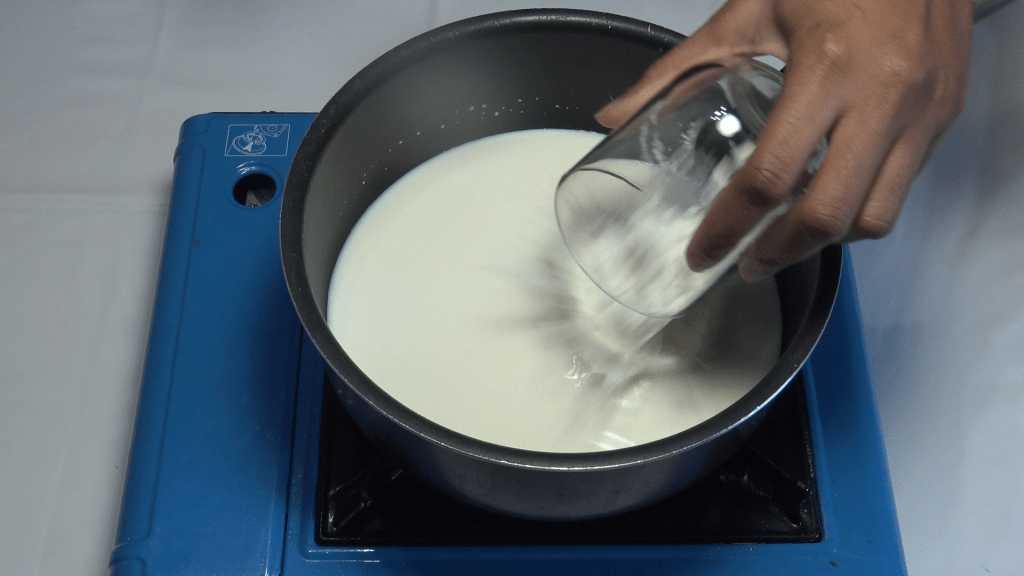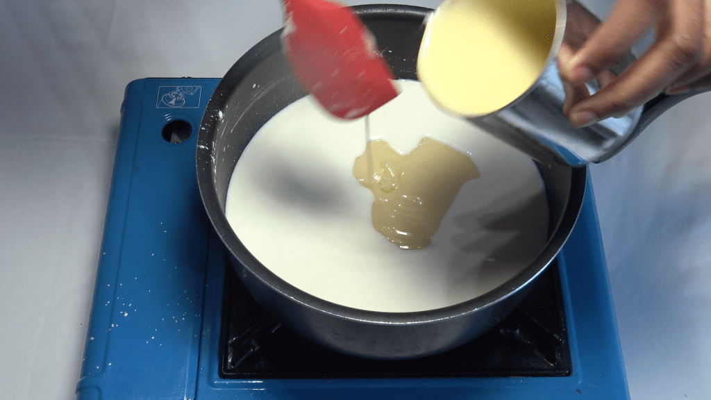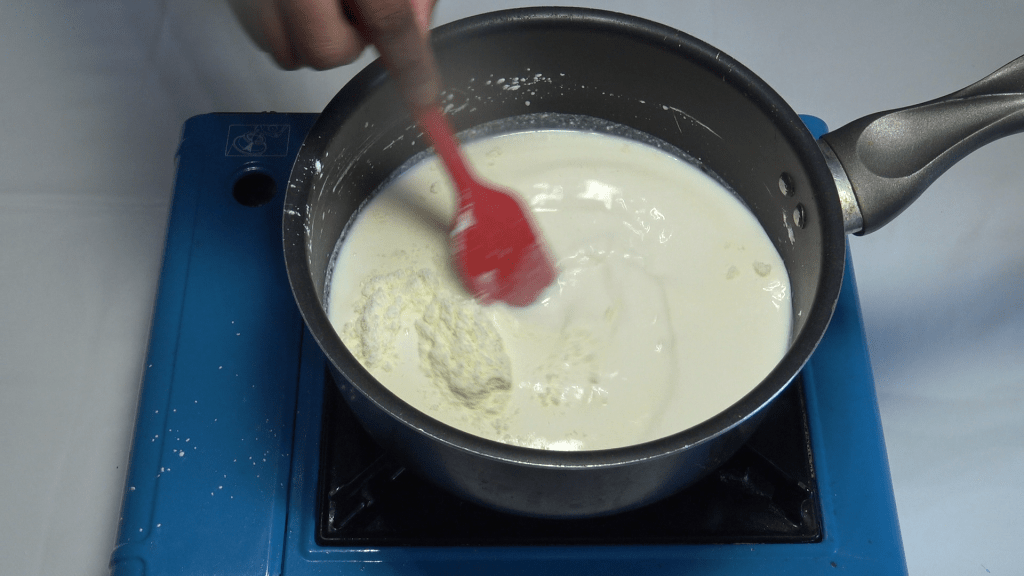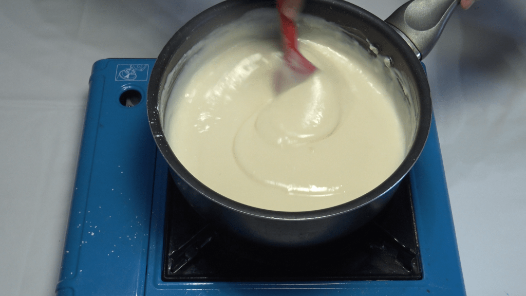 Allumer le feu moyen, et remuer sans arrêt jusqu’à ce que la crème ait épaissi,