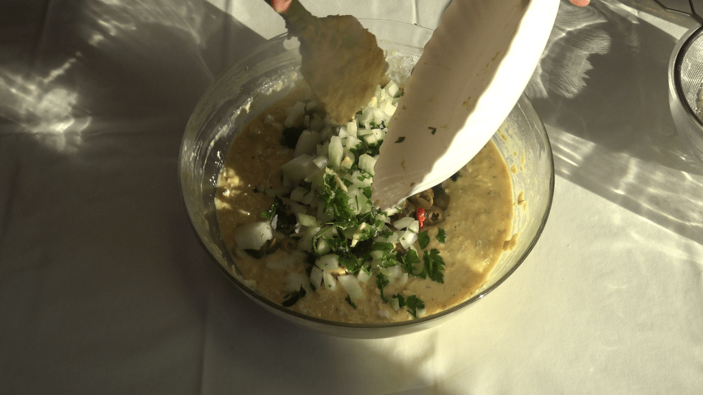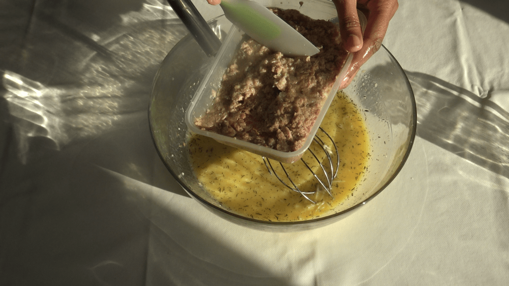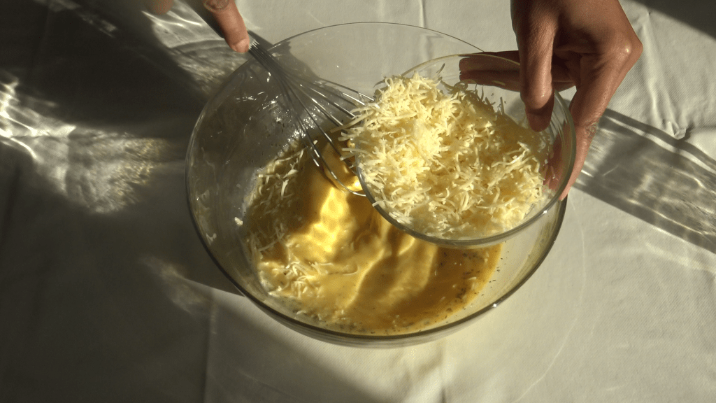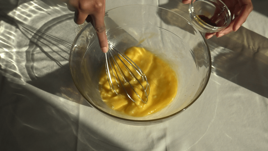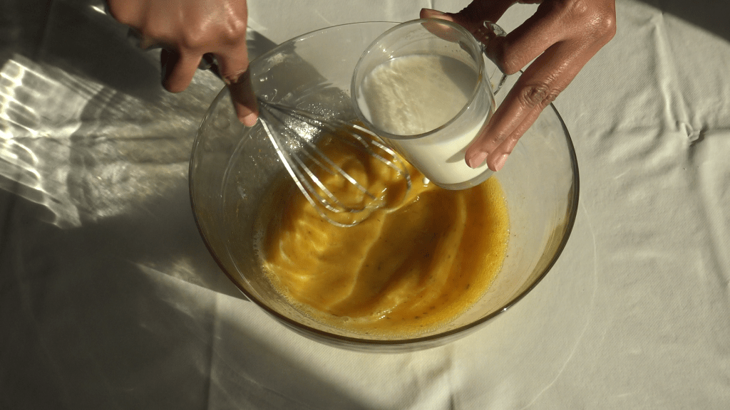 Mélanger les œufs avec les épices (si tu as décidé d’en mettre) et le sel