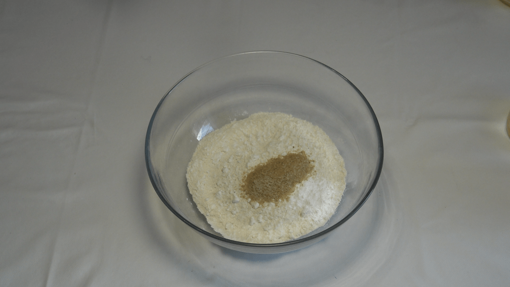 Commencer par préparer la pâte : mélanger farine + levure + sel + sucre et creuser un puits