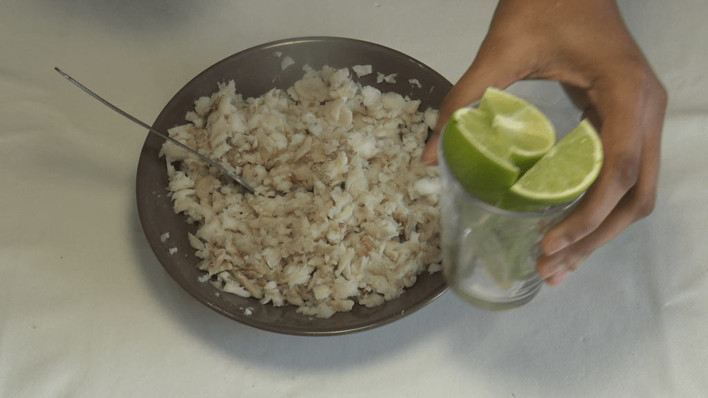 Maintenant que le poisson a refroidi on va pouvoir l’émietter et y ajouter le jus de citron