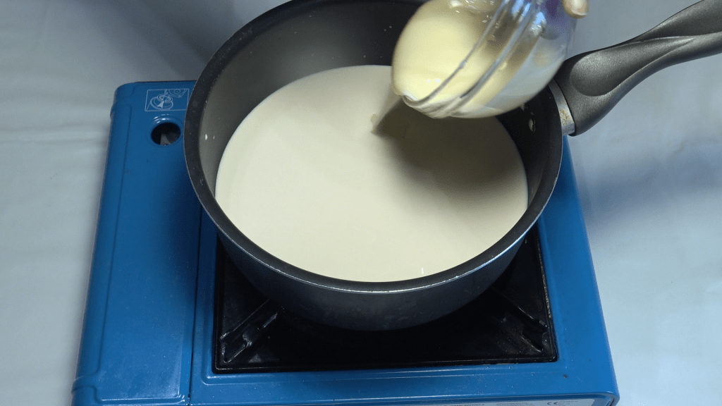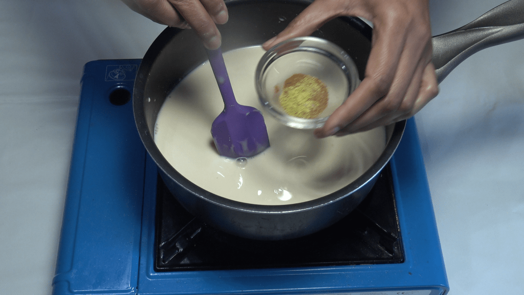 Délayer la poudre à crème dans l’eau et l’incorporer au lait frémissant