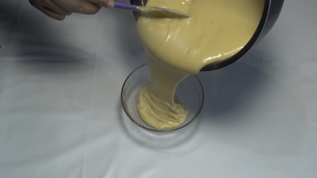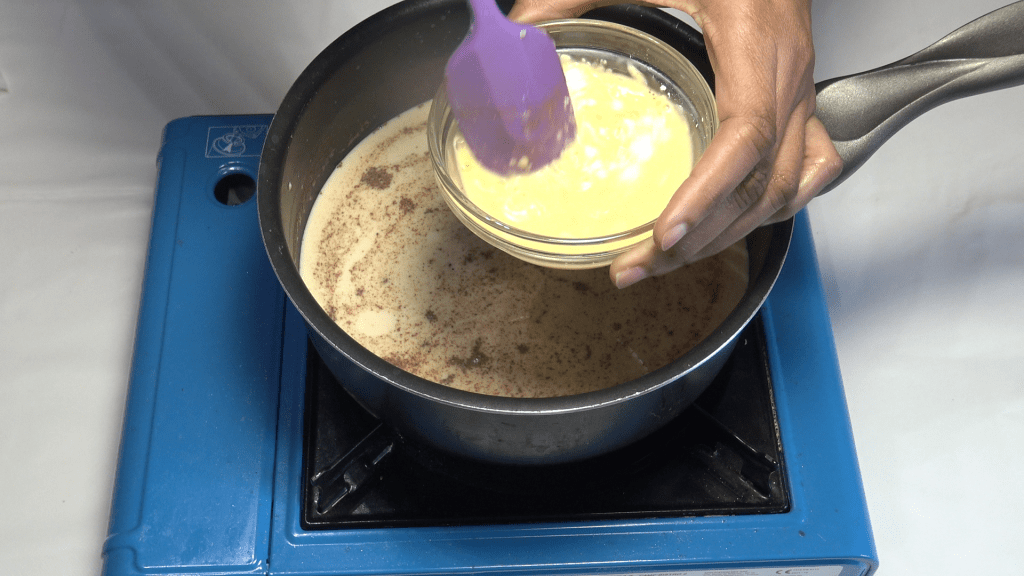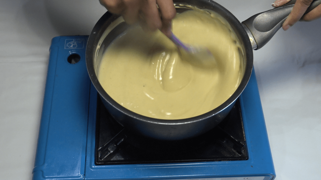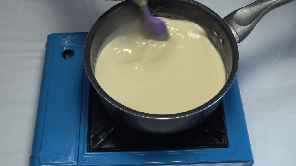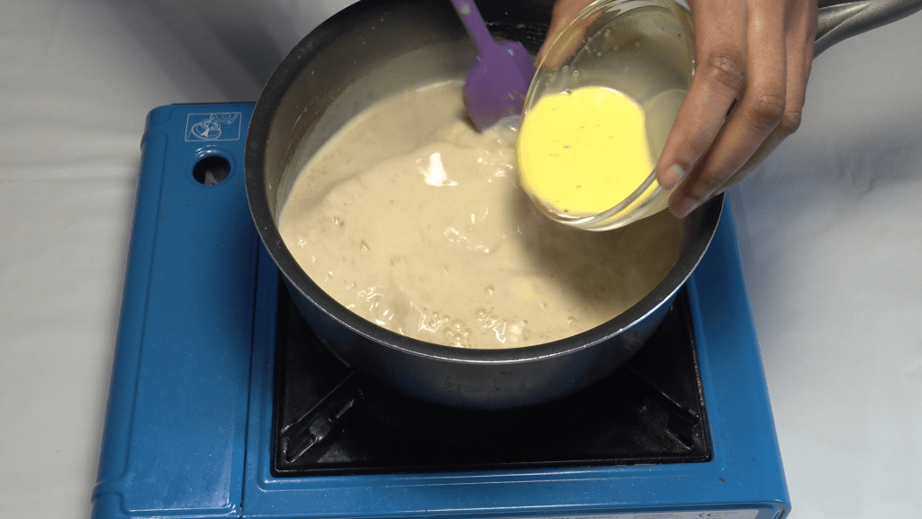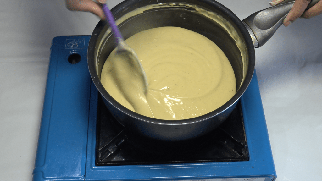 Remuer sans arrêt à la spatule jusqu’à ce que la crème ait épaissit