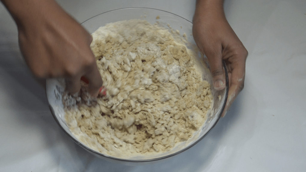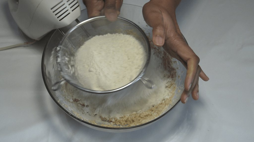 Ajouter la farine en 1 ou 2 fois et fouetter rapidement pour obtenir une texture sableuse