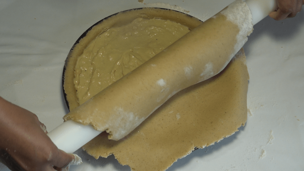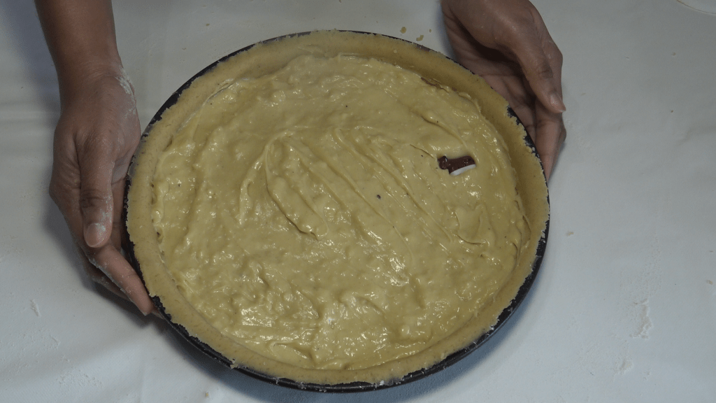 Etaler la 2e partie de pâte et recouvrir la crème avec