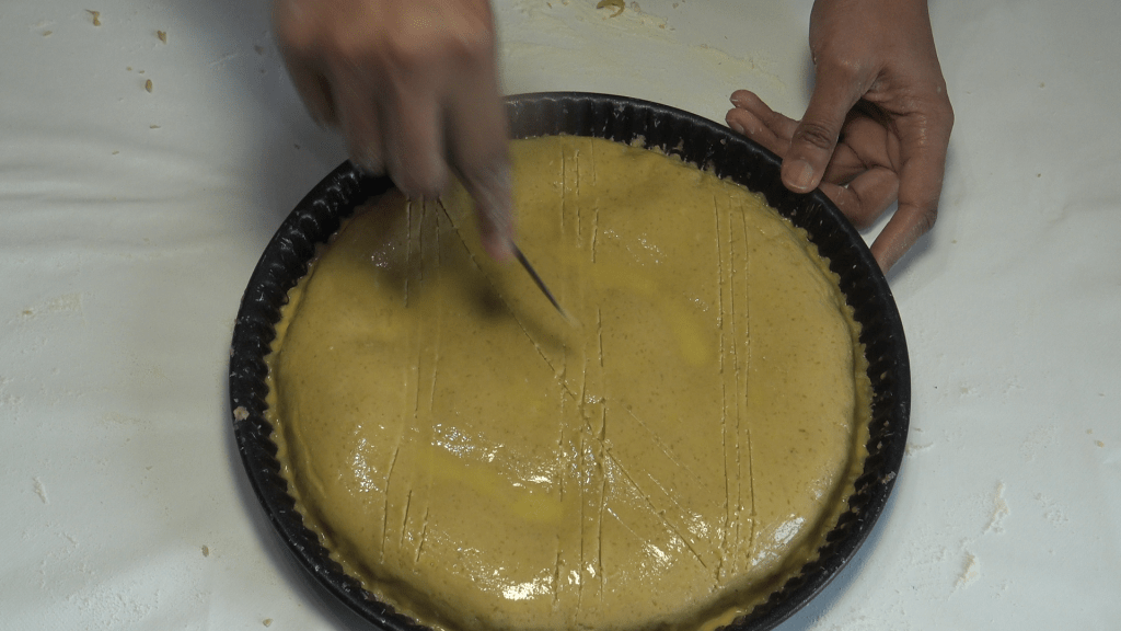 Badigeonner de jaune d’œuf et faire des croisillons avec un couteau ou une fourchette