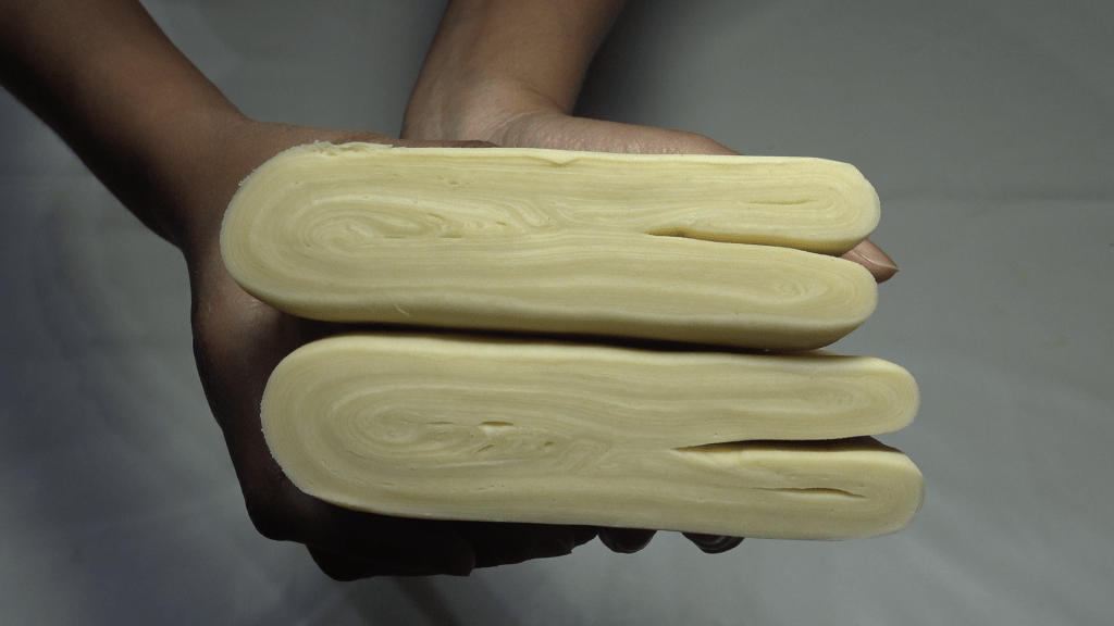 Enfin, laisser reposer la pâte feuilletée inversée minimum 30min au frais avant de l’utiliser, idéalement toute la nuit.