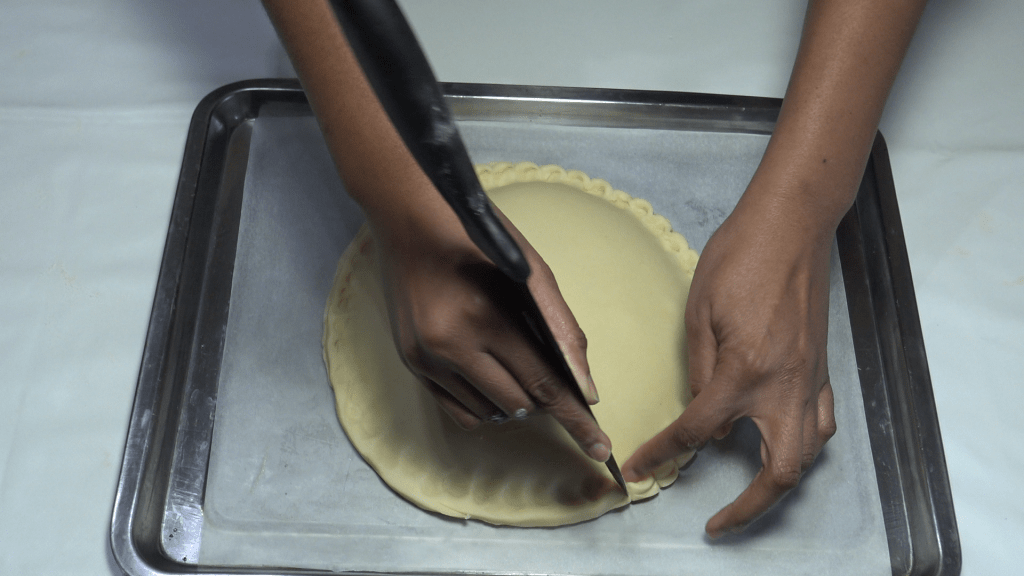 Chiqueter les bords à l’aide du dos d’un couteau, c’est-à-dire qu’on leur donne une jolie forme mais ce n’est pas obligatoire.