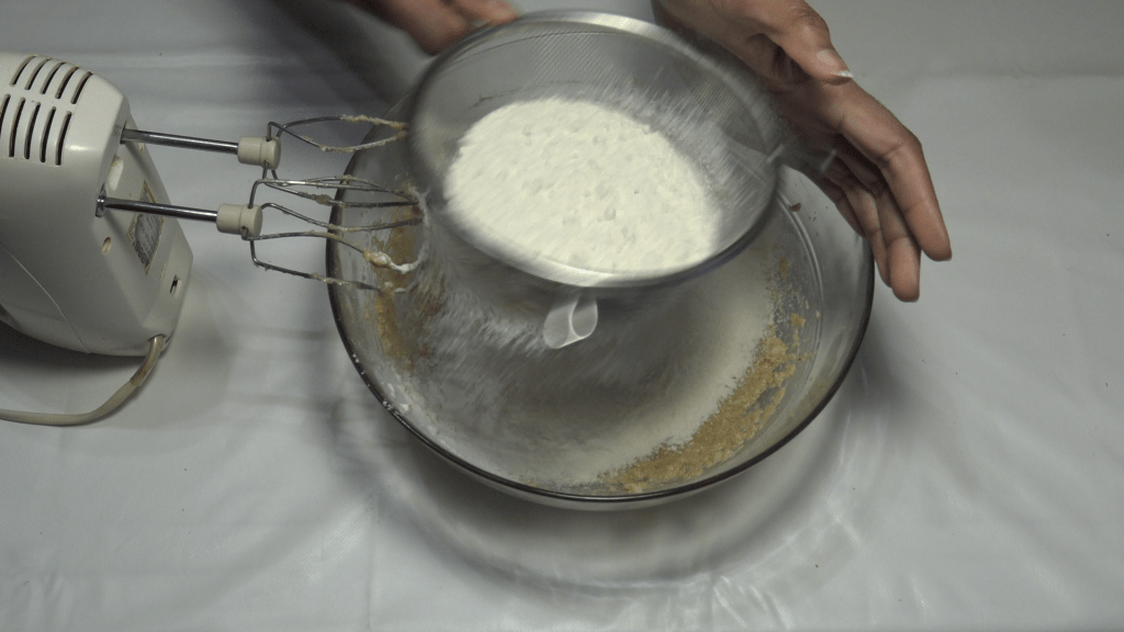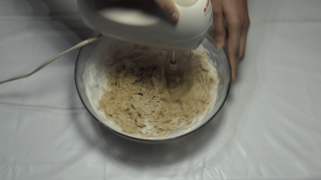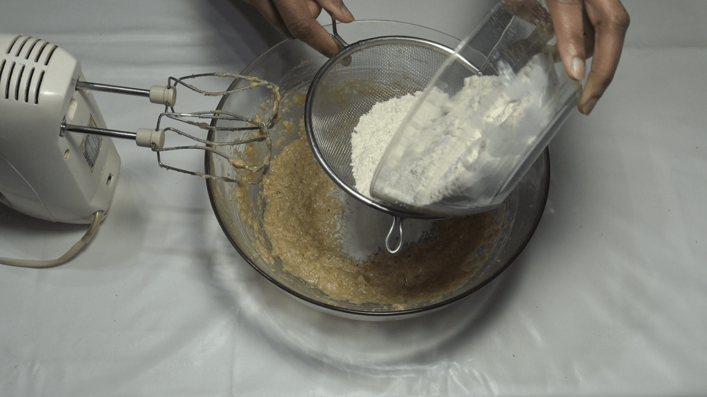 Ajouter la farine et la levure en une fois et bien mélanger sans trop fouetter.