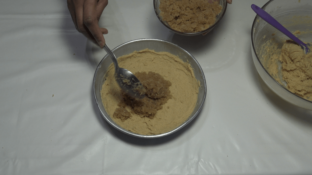 Fouetter le beurre avec le sucre, ajouter l’œuf, puis les épices, le zeste de citron, les aromes, le sel, ainsi que le rhum le cas échéant.