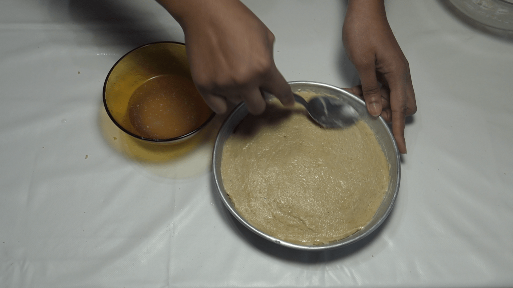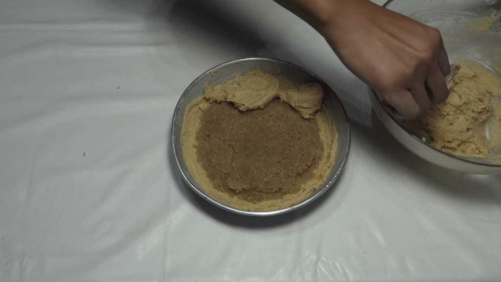 Etaler la moitié de la pâte dans le moule beurré et fariné
