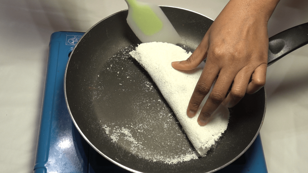 Tu peux cuire les crêpes de manioc plus ou moins longtemps, moi je l’aime bien cuite et croustillante.