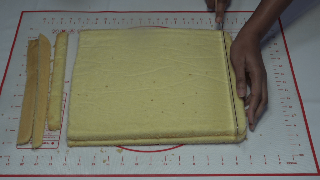 Parer les bords des génoises afin qu’elles aient toutes exactement la même taille