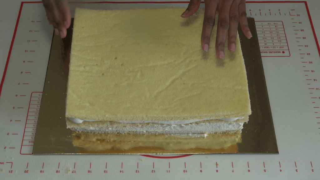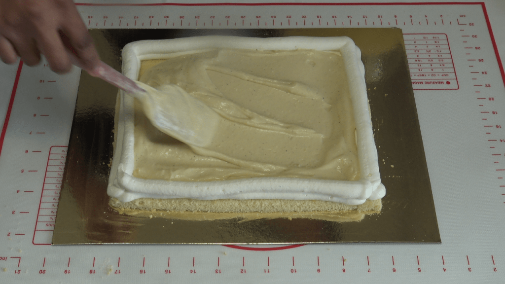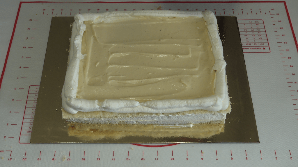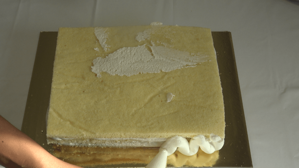 Répéter les opérations précédentes et recouvrir de la 3e génoise et l’imbiber également