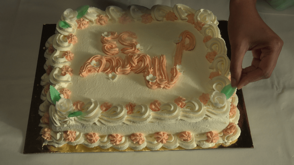 Bien lisser et égaliser les bords et le dessus du gâteau