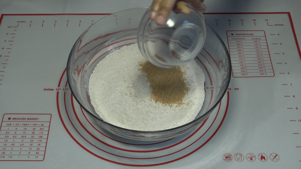 Dans un saladier, mettre la farine et le sel et le reste du sucre bien les mélanger.