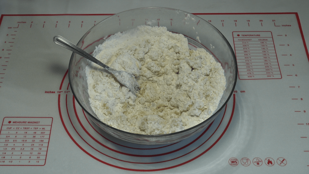 Bien mélanger d’abord à la spatule puis pétrir environ 5 min à la main sur un plan de travail très légèrement fariné.
