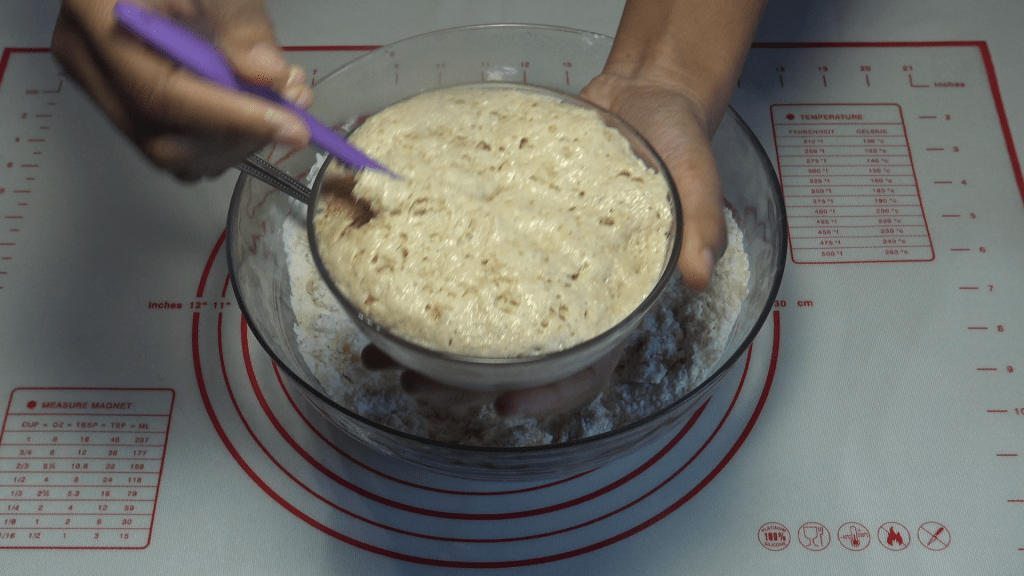 Après 1 h de repos, dégazer la pâte à nouveau,