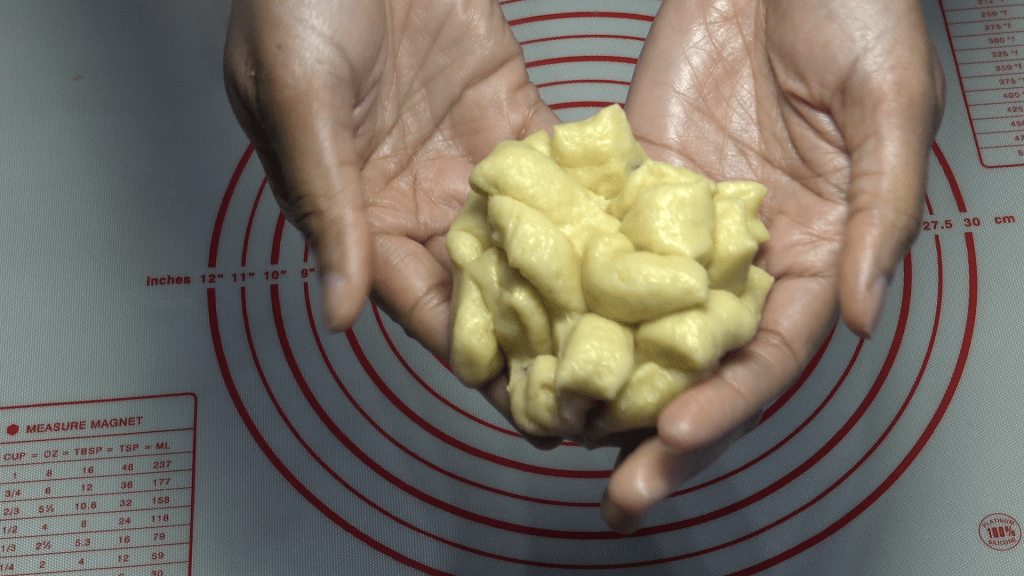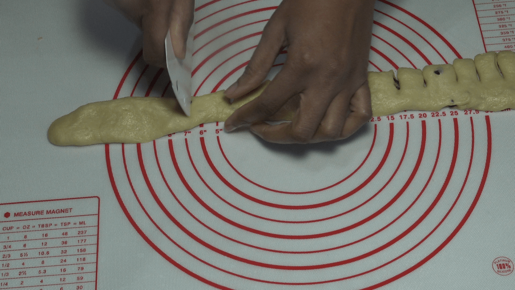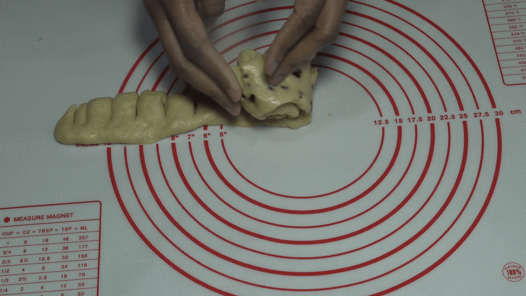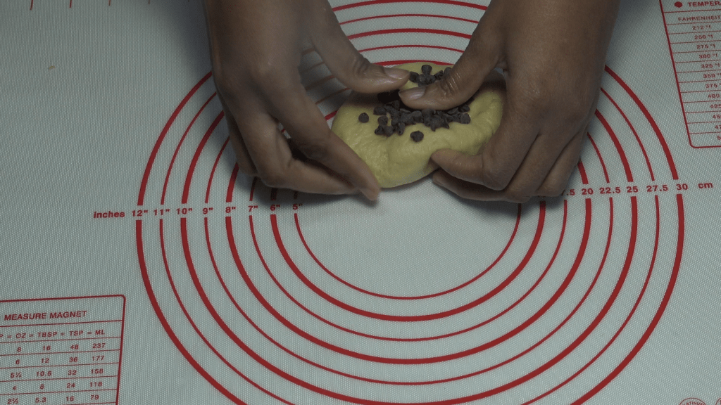 - Soit tu commences à détailler des pâtons et incorporer les petites dans chacun d’eux, ainsi aucun risque de fonte de tes petites pépites.