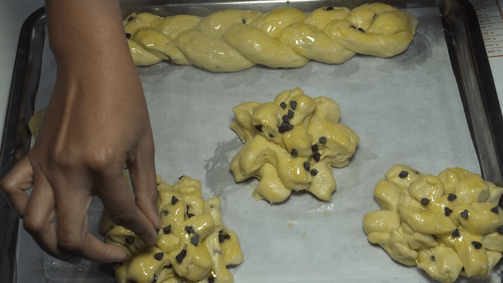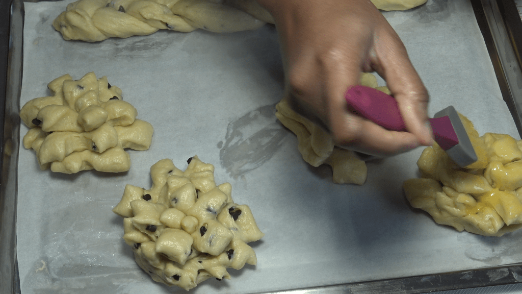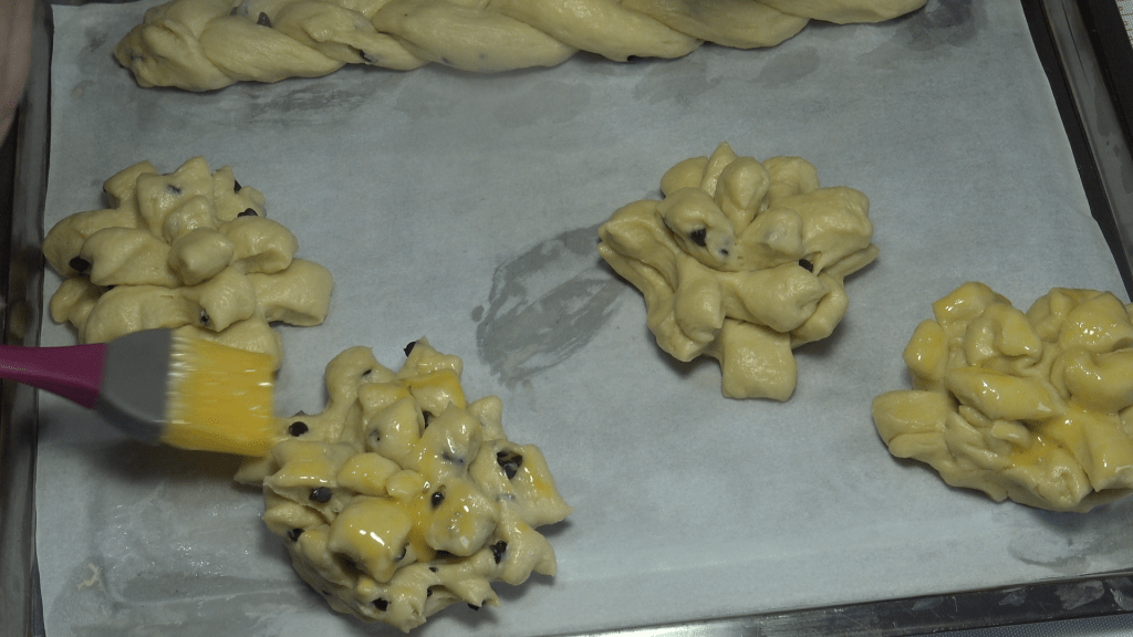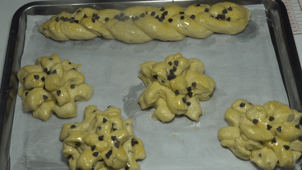 Disposer le tout sur une plaque de cuisson et laisser lever 10 min. Pendant ce temps, faire chauffer le four à 180°c.