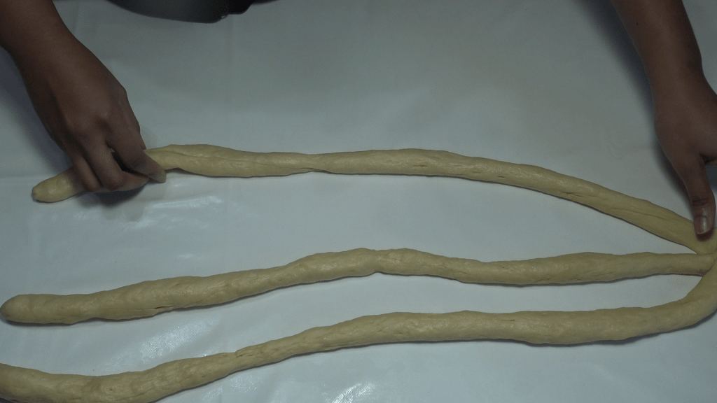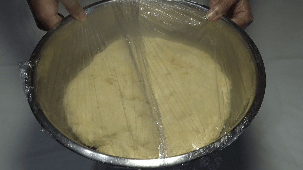 La pâte est collante et c’est normal. Laisser la pâte reposer pour 1h30 à 2h00, recouverte d’un torchon propre ou de film alimentaire dans un endroit tiède.