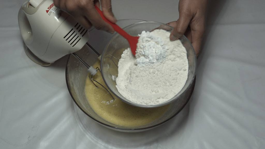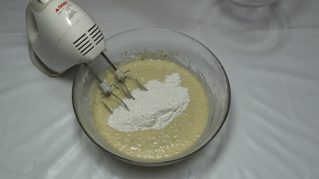 Incorporer ensuite la moitié de la farine et de la levure mélangées et tamisées puis le jus et zeste de citron et enfin le seconde moitié de farine et levure.