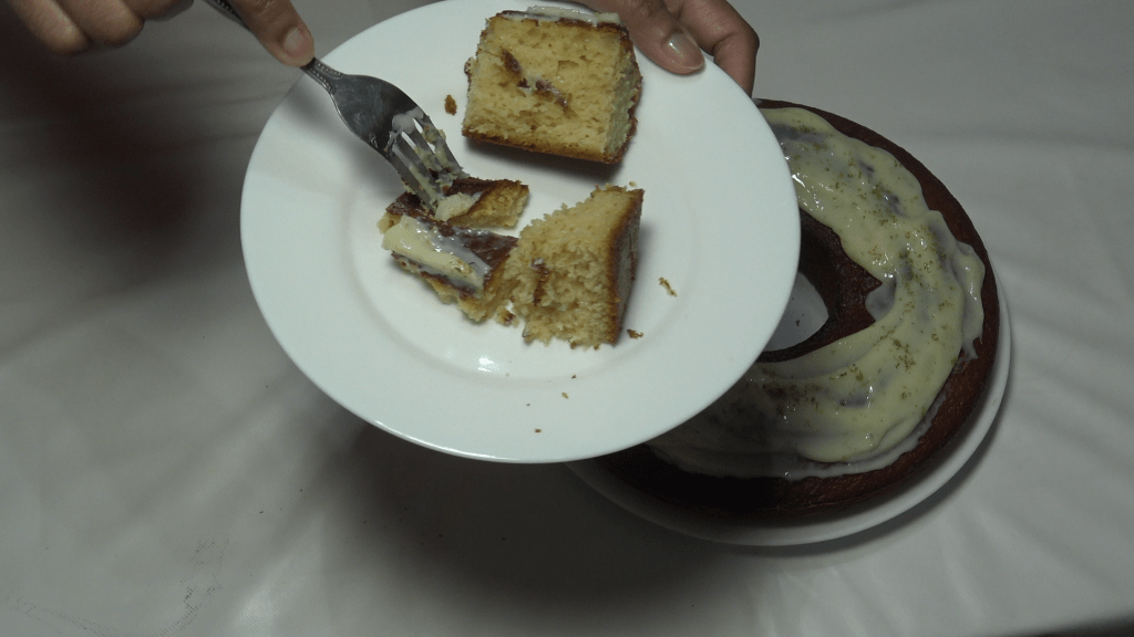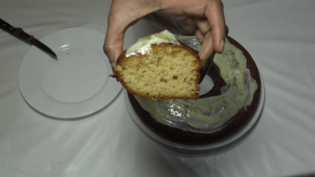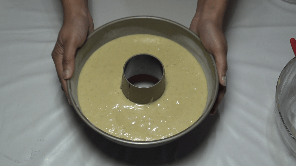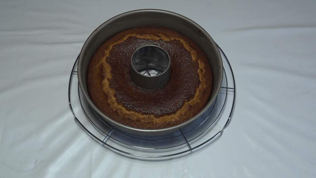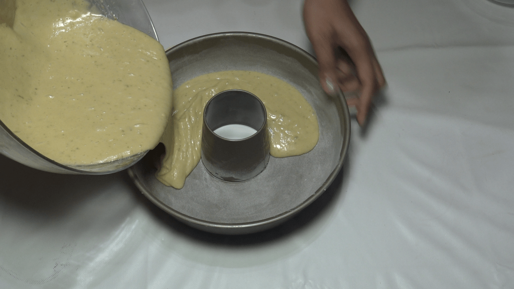 Verser la pâte dans un moule beurré et fariné, cuire environ 45 min (cela dépendra du four etc.), vérifier la cuisson à l’aide d’un cure dent ou de la pointe d’un couteau.