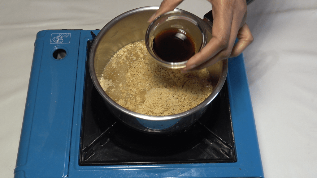 Ajouter ensuite le reste des ingrédients, c’est à dire le beurre de cacahuète (ici j’utilise de la pâte de cacahuète 100%), la sauce soja claire, le galanga, le sucre de canne, le sel, le jus de citron, l’ail, le piment et enfin l’eau.