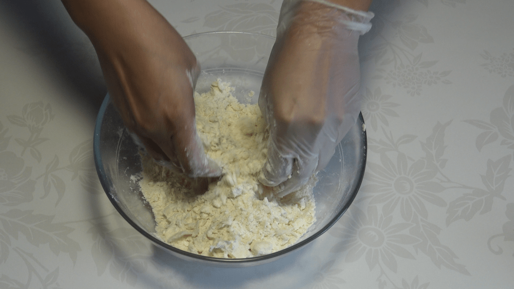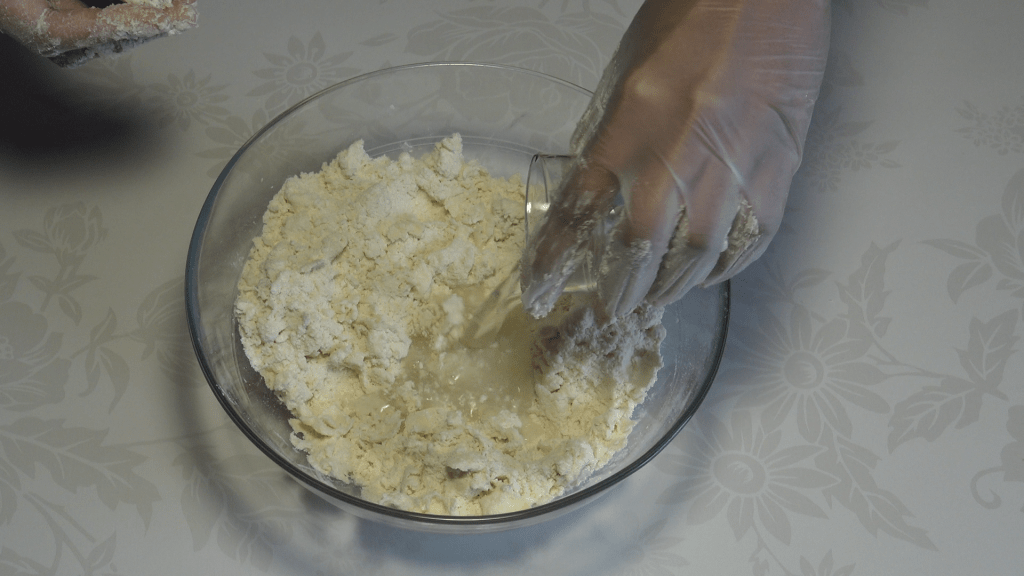 Ajouter l’eau petit à petit jusqu’à obtenir une pâte homogène, attention tut de même à ne pas trop la travailler.