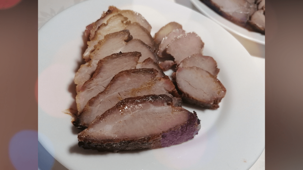 Incontournable de la cuisine chinoise, le porc char siu est un plat d’origine cantonaise. C’est une pièce de porc longuement marinée dans un mélange d’épices, de sauce soja, de sauce hoisin, et de vin rouge, puis cuite au barbecue et laquée au miel. Certaines recettes contiennent de la pâte de soja fermenté rouge et de l’alcool de riz.