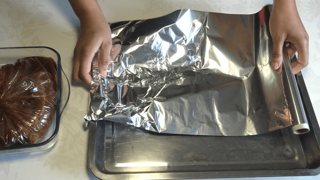 Installer un plat de cuisson en tapissant le fond de papier d’aluminium (pour qu’il soit plus facile à nettoyer par la suite), et placer la grille de cuisson au-dessus du papier alu.