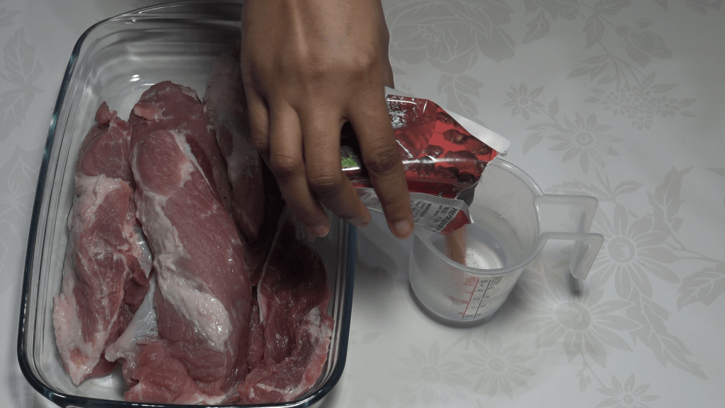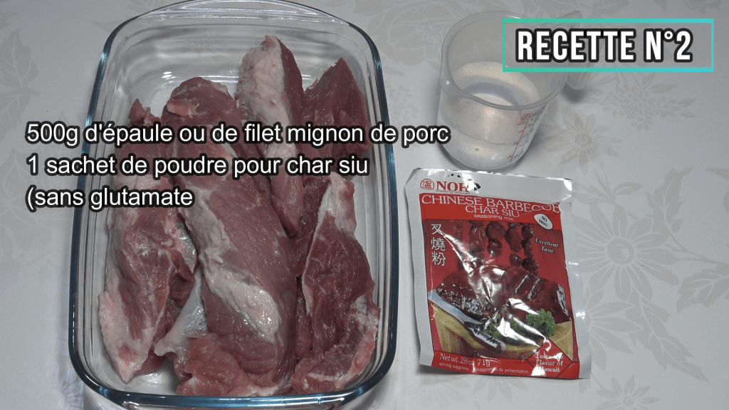 Evidemment comme ça c’est plus facile 😉 et surtout plus pratique, mais je préfère tout de même la méthode traditionnelle. On peut également faire mariner la viande en frottant la poudre de char siu dessus, c’est-à-dire sans diluer la poudre dans l‘eau. Il existe aussi de la pâte de char siu.
