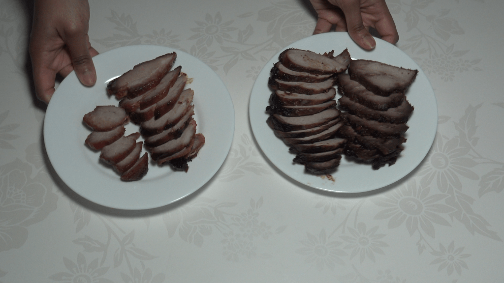 Le porc char siu se déguste avec du riz blanc, comme farce dans des sao pao (brioches vapeur), ou en garniture de soupes de nouilles. Pour ma part je préfère le manger dans des crêpes de riz vapeur ou avec du riz cantonnais, selon moi c’est l’accord parfait !